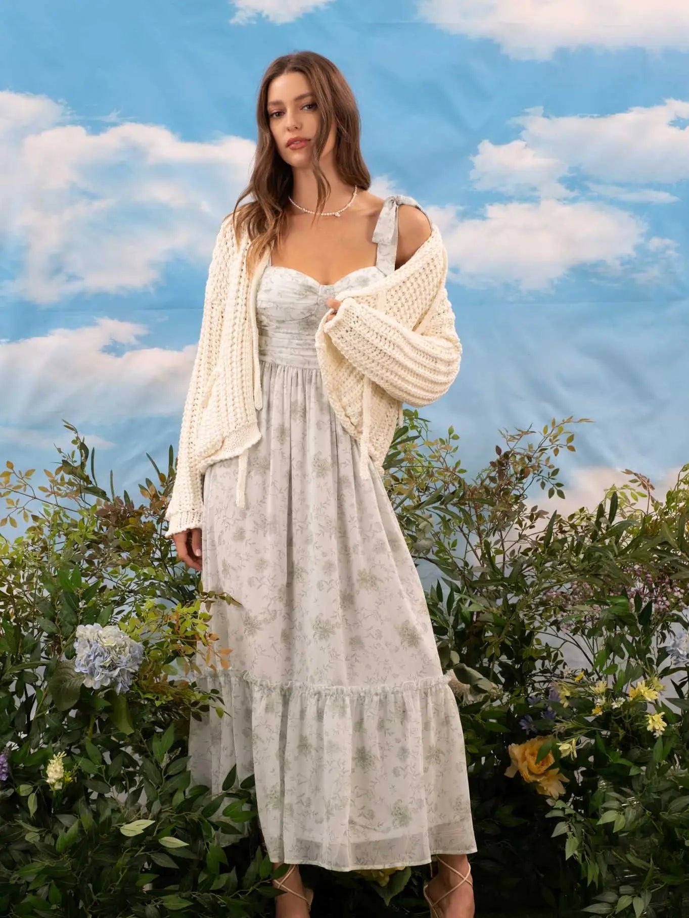 Floral Sweetheart Ruched Front Sleeveless Midi Dress