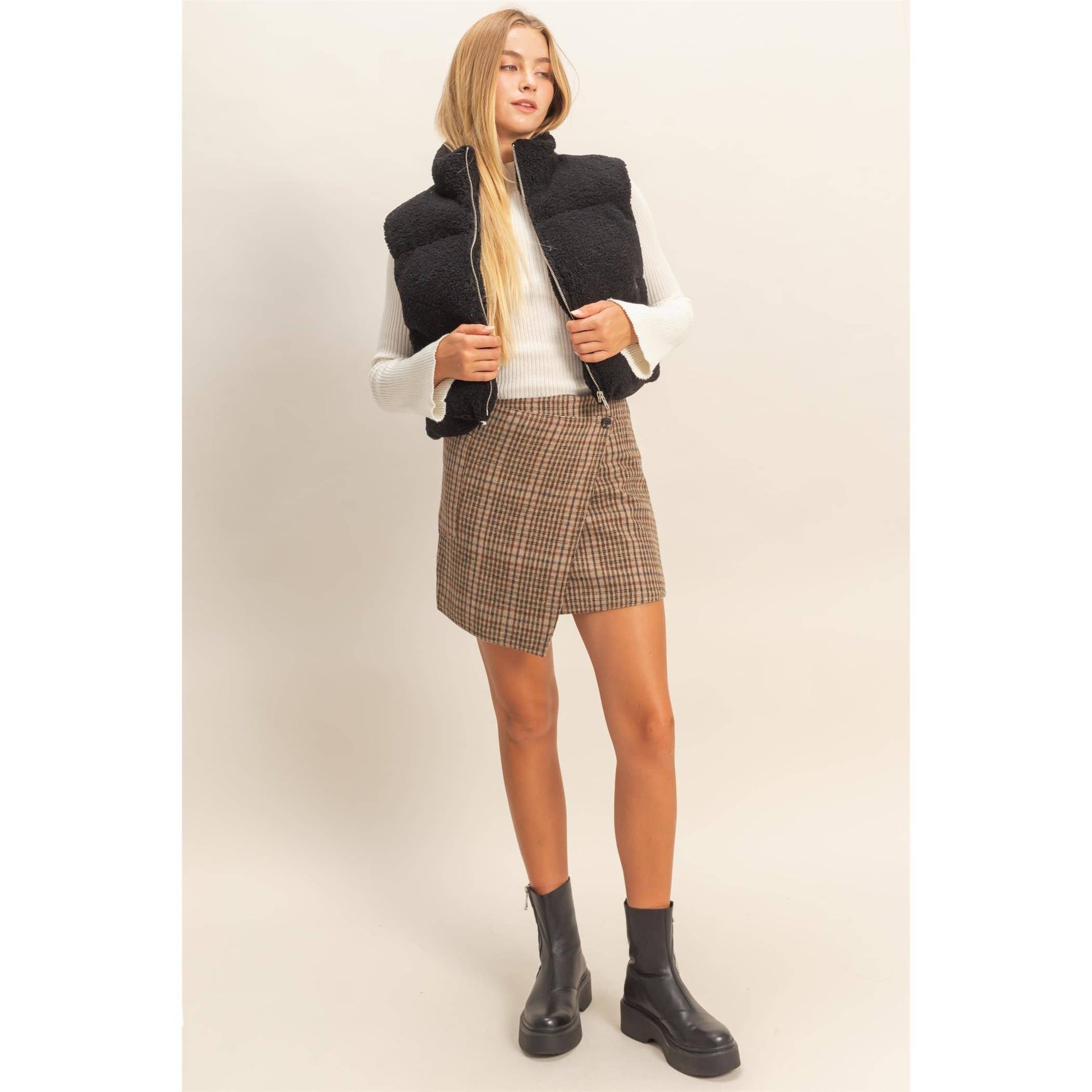 Teddy Fur Puffer Vest - Black